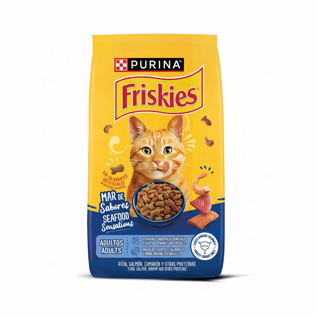 Alimento seco completo y balanceado formulado especialmente para gatos adultos. Friskies 7.5K proporciona nutrientes esenciales que favorecen la salud digestiva, el brillo del pelaje y la vitalidad general. Con una mezcla de proteínas y vitaminas, este alimento mantiene a tu gato saludable y satisfecho. Presentación de 7.5 kilogramos, ideal para hogares con gatos que buscan calidad y valor. Recomendado para alimentación diaria de gatos adultos.