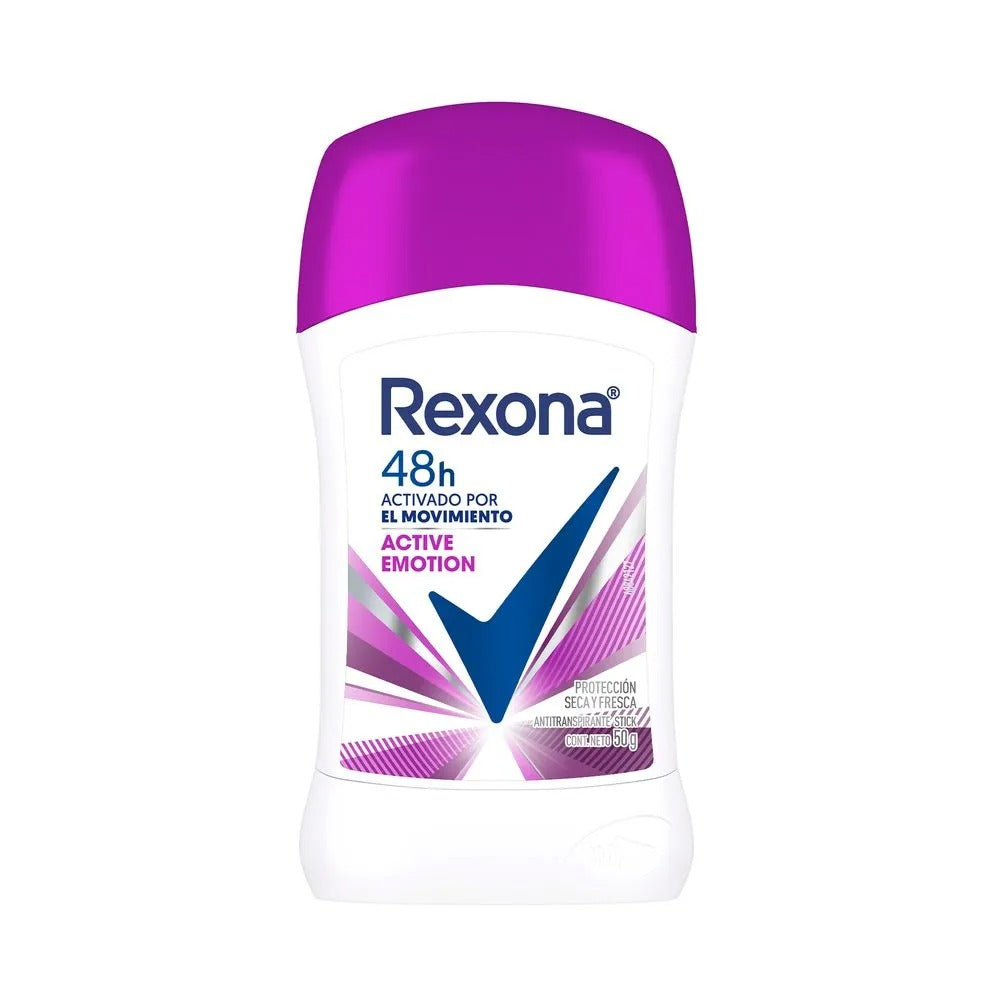 Desodorante en barra Rexona Active Emotion especialmente formulado para mujeres. Con su tecnología de protección activa, ofrece hasta 48 horas de control del olor y transpiración, manteniéndote fresca durante todo el día. Su presentación de 50 gramos es práctica y portátil, ideal para llevar en tu bolso. La fórmula suave cuida tu piel delicada mientras proporciona una protección confiable. Perfecto para tu rutina diaria de cuidado personal.