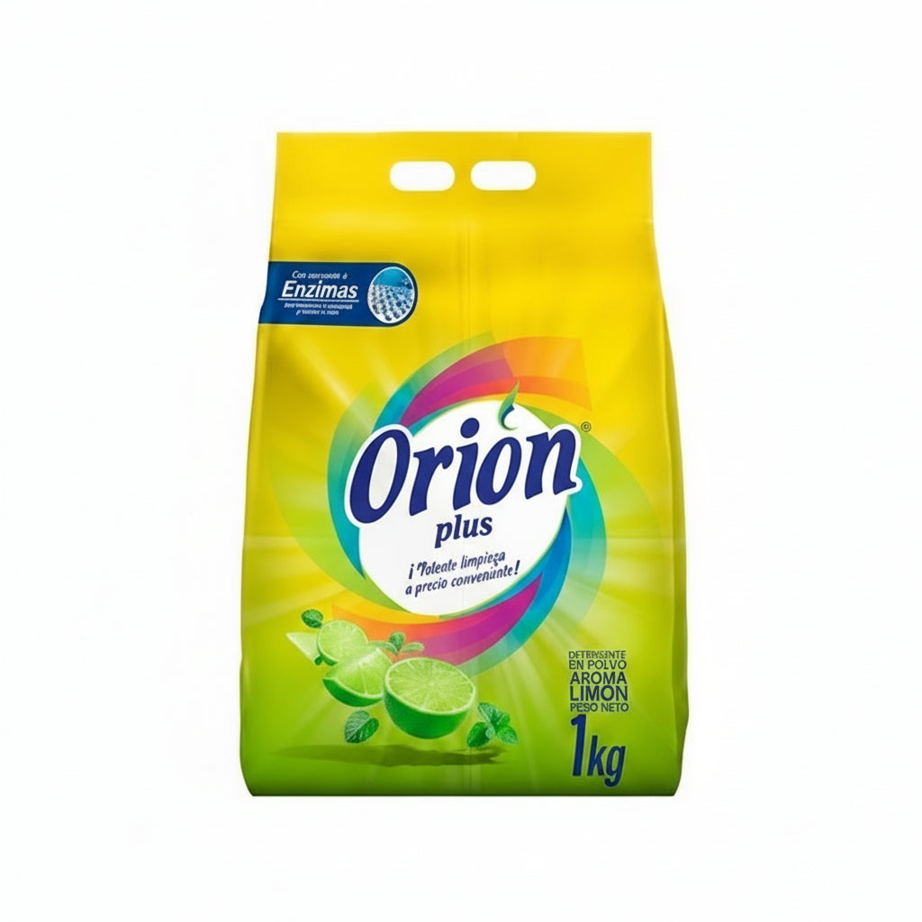 Detergente en polvo Orión con aroma a limón, presentación de 1kg. Fórmula potente diseñada para eliminar manchas difíciles en ropa blanca y de color. Su concentración de agentes limpiadores activos garantiza resultados efectivos incluso en agua fría, reduciendo el consumo energético. Aroma fresco y duradero que deja la ropa impecable. Rendimiento óptimo en lavadoras automáticas y lavado manual. Ideal para familias que buscan limpieza profunda con eficiencia.