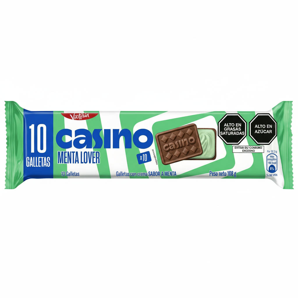 Galletas Casino Menta Torre 108 g Disfruta del refrescante sabor de menta en cada galleta crujiente. Las Galletas Casino Menta Torre ofrecen una experiencia de sabor auténtico con su textura ligera y delicada. Perfectas para acompañar tu café o té de la tarde, estas galletas de 108 g son ideales para compartir en familia o disfrutar como un snack satisfactorio. Su presentación en torre garantiza frescura y facilita el almacenamiento. Una opción clásica que combina tradición y calidad en cada bocado.