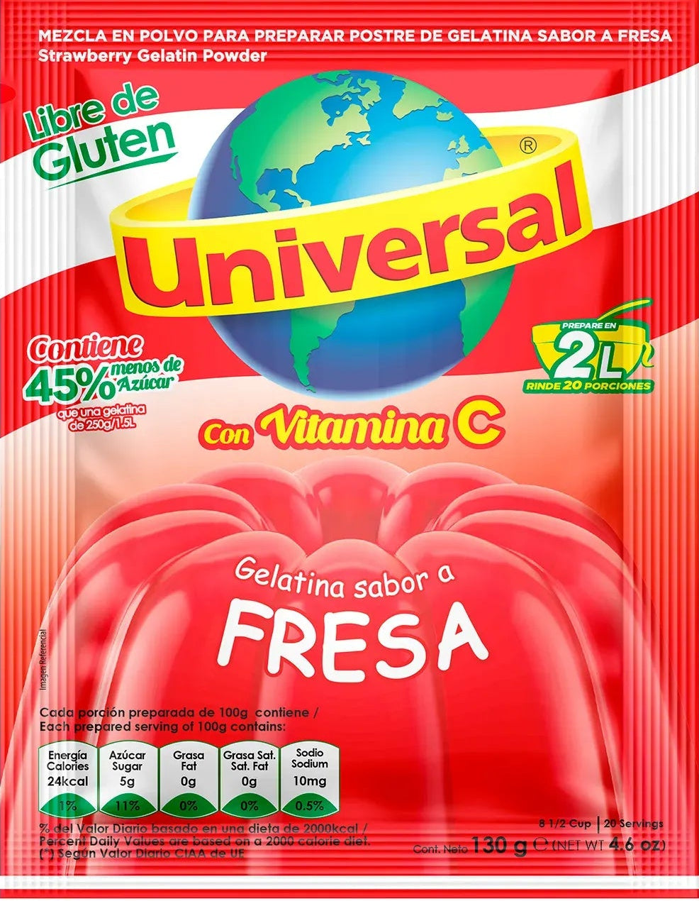 Gelatina Universal Fresa 130 g 2L