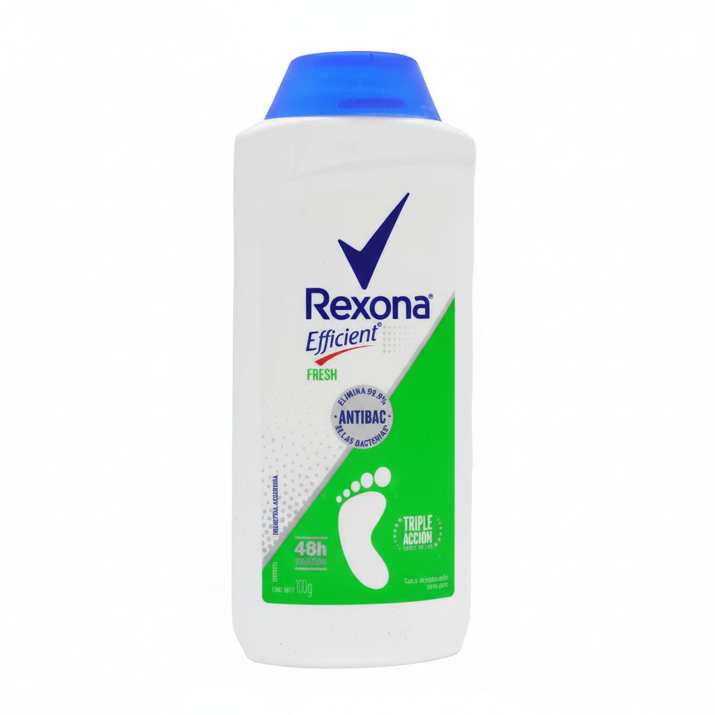 Talco desodorante especializado que mantiene los pies frescos y secos durante todo el día. La fórmula Rexona Fresh combina propiedades antitranspirantes con un aroma refrescante que neutraliza olores desagradables. Ideal para uso diario, especialmente en climas cálidos o después de actividades físicas. Su presentación de 200 gramos ofrece larga duración. Proporciona protección continua contra la humedad y el mal olor, dejando una sensación de frescura en los pies.